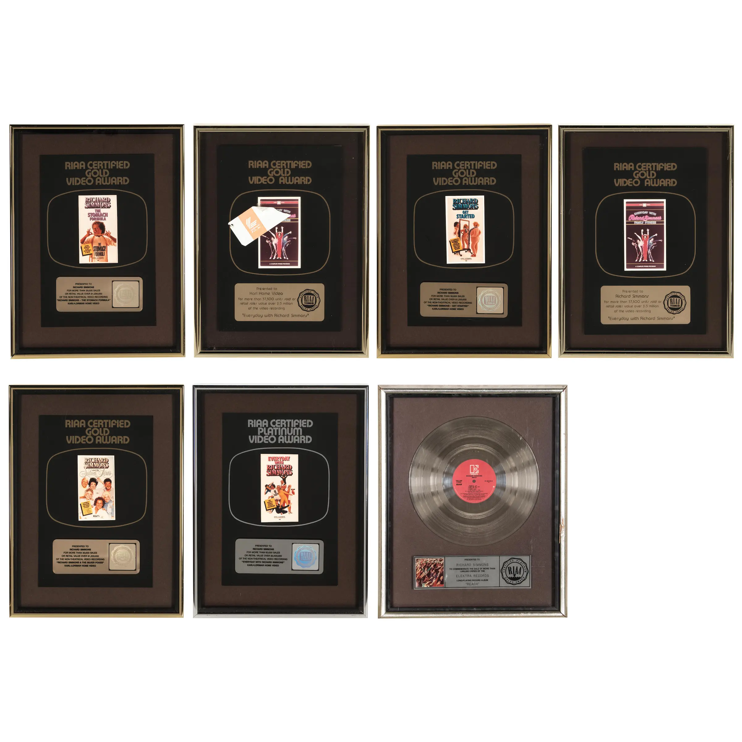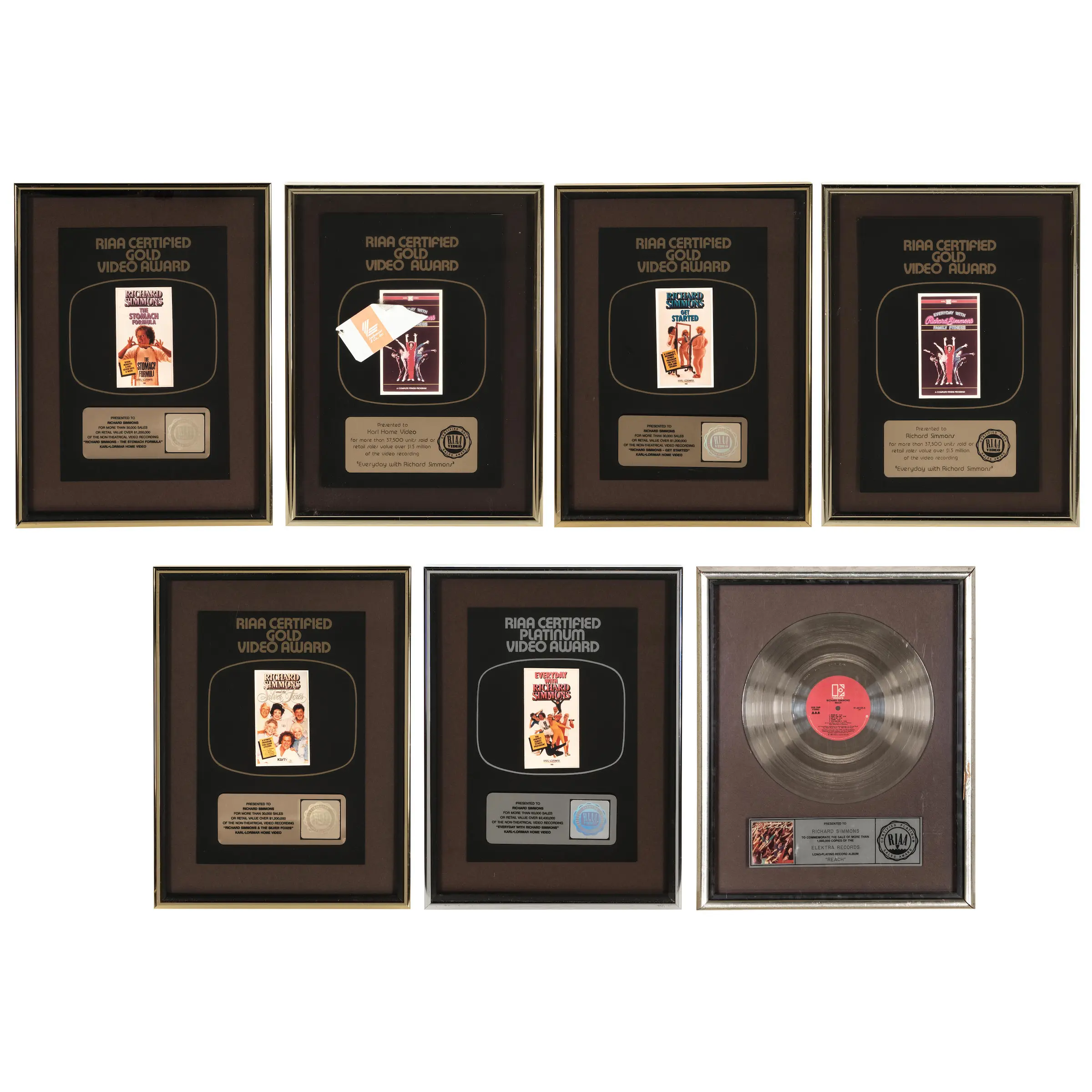 SEVEN RICHARD SIMMONS FRAMED RIAA AWARDS