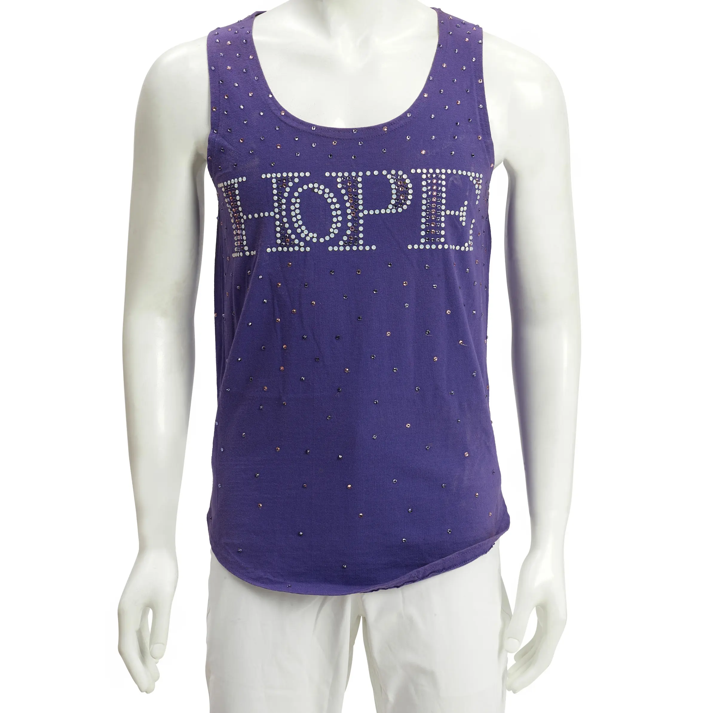 purple cotton tank top with Swarovski crystal embellishments spelling HOPE.